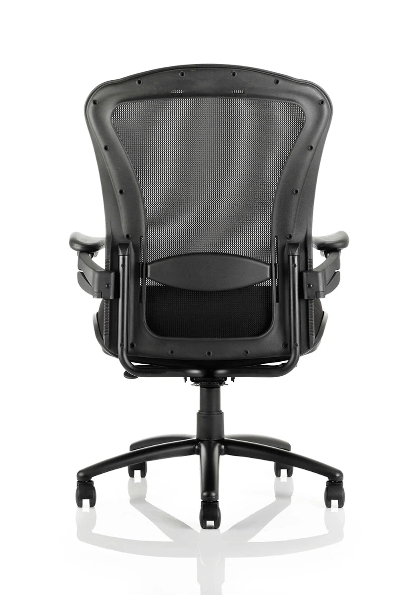 The Texan bariatric office chair has been designed with a reinforced structure and a larger seat and back. With a deep cushioned seat pad, fully synchronous action allowing the seat and back to tilt together and lock in various positions, height adjustable lumbar support to alleviate back strain caused by many hours in one position. This chair will ensure extended comfort for the larger user.