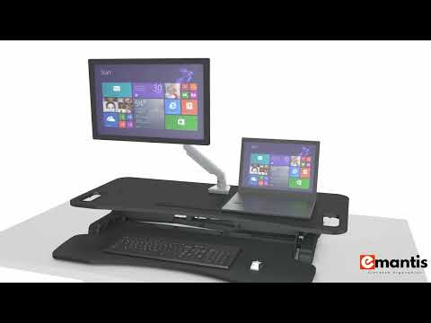 The Emantis Aura is a versatile desk converter designed to transform any standard fixed-height desk into an ergonomic sit-stand workstation. This gas-spring assisted platform allows professionals to switch between sitting and standing positions instantly, helping to alleviate lower back pain and improve focus without the need to replace existing office furniture.